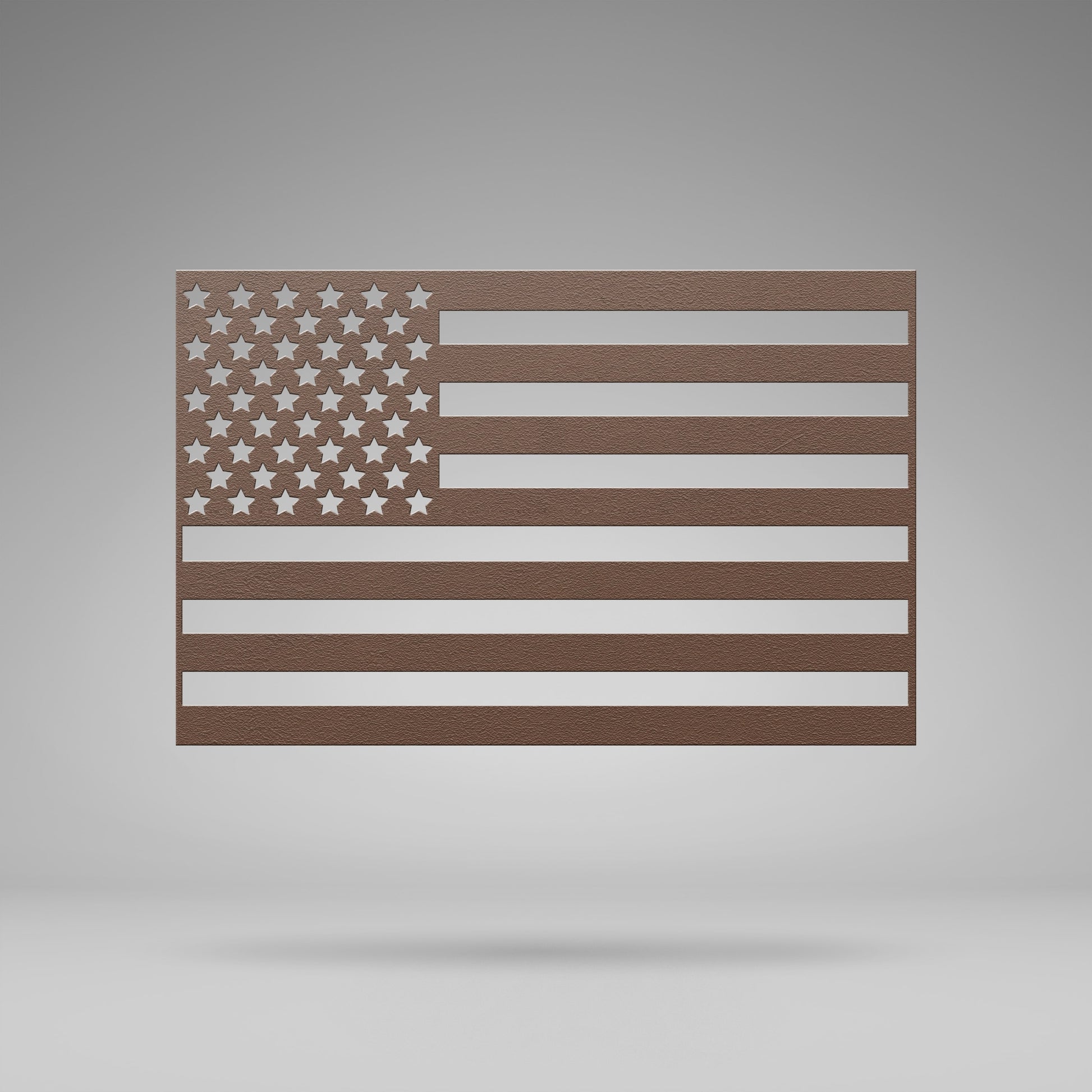 Show your patriotic pride with our solid color metal American flag wall art. This custom-made piece is crafted from durable metal, ensuring that it will last for years to come. The flag is rendered in a single, solid color, which gives it a sleek and modern look. The sign is powder-coated to give it a polished finish that will resist rust and fading.